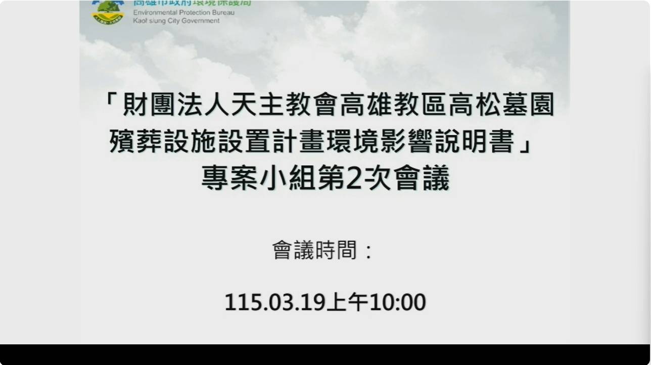 115年3月19日召開「財團法人天主教會高雄教區高松墓園殯葬設施設置計畫環境影響說明書(修正一版)」專案小組第2次初審會議